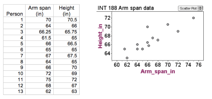 Causation is the essence of what independent and dependent relationships are, so it makes sense for students to plot the data, with either variable on either axis, to first look for evidence of a relationship. If they see a pattern that suggests relationship, they can think about whether the relationship between two variables could be causal or not, given the context of the dataset.