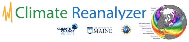 The Climate Reanalyzer is a platform for visualizing climate and weather data using interfaces for reanalysis and historical station data, forecast maps, historical timeseries (temperature, pressure, sea surface temperature, precipitation, wind…), correlations, and more. Data are downloadable in .csv format. (High school). (The Climate Reanalyzer is created and maintained by Sean Birkel, University of Maine Climate Change Institute.)